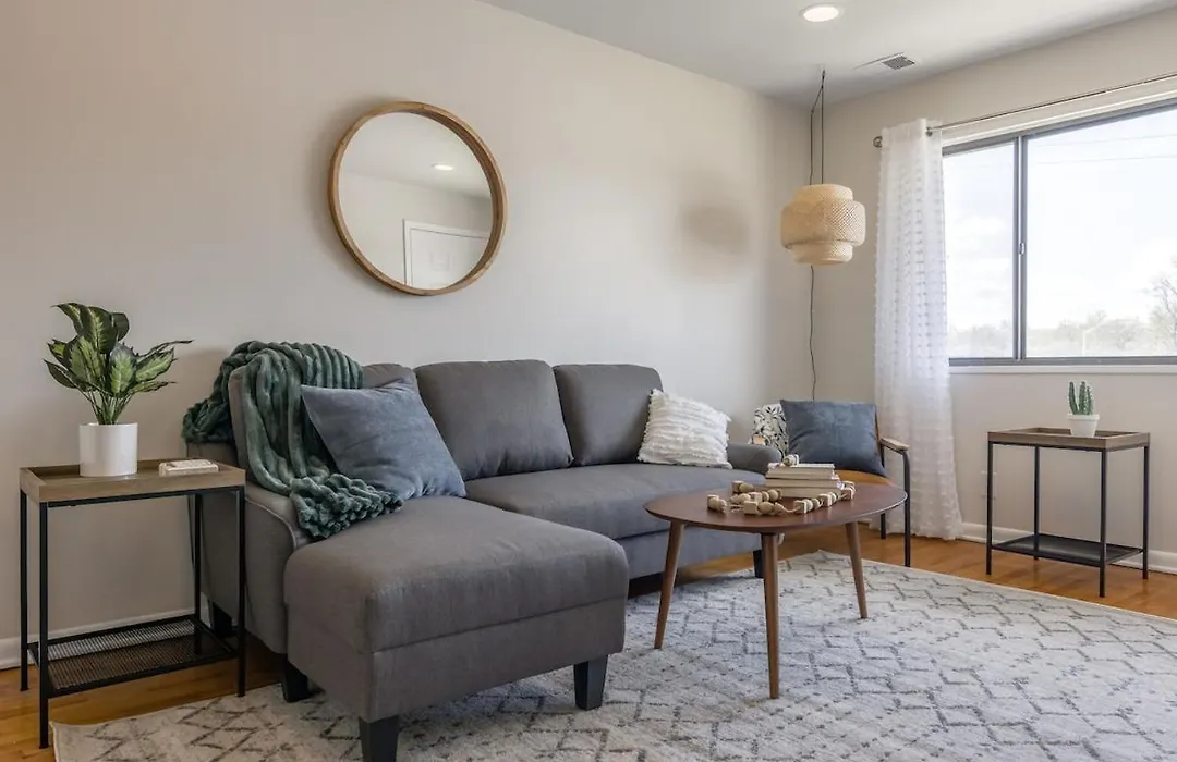 The spacious Boho 2 Bdr Retreat King Size Apartment Kansas City is located 4.8 km from the Parkville Nature Sanctuary and 10 minutes' drive from the English Landing Park. Wi-Fi and private car parking are among the essentials at guests' disposal.